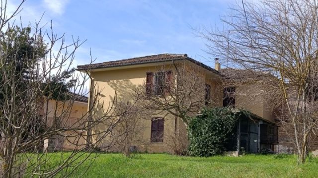 In de kleine borgo Pantana Serralta, op korte afstand van het stadje Pergola, ligt deze goed onderhouden vrijstaande woning bestaande uit twee zelfstandige wooneenheden. Aan de voorzijde bevindt zich een kleine voortuin en biedt de woning uitzicht op het dal van de rivier de Cesano en de bergen. Aan de achterzijde van de woning ligt een prachtig vlak terrein van 3500 vierkante meter.
